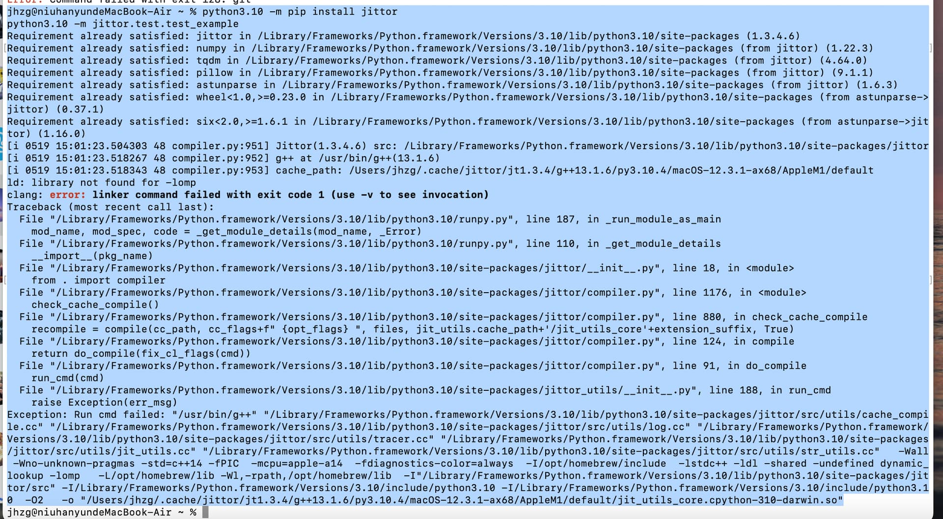 jittor 同时适配 intel 芯片和 M1 芯片的 macOS,安装方式相同,都需要先安装相关依赖。