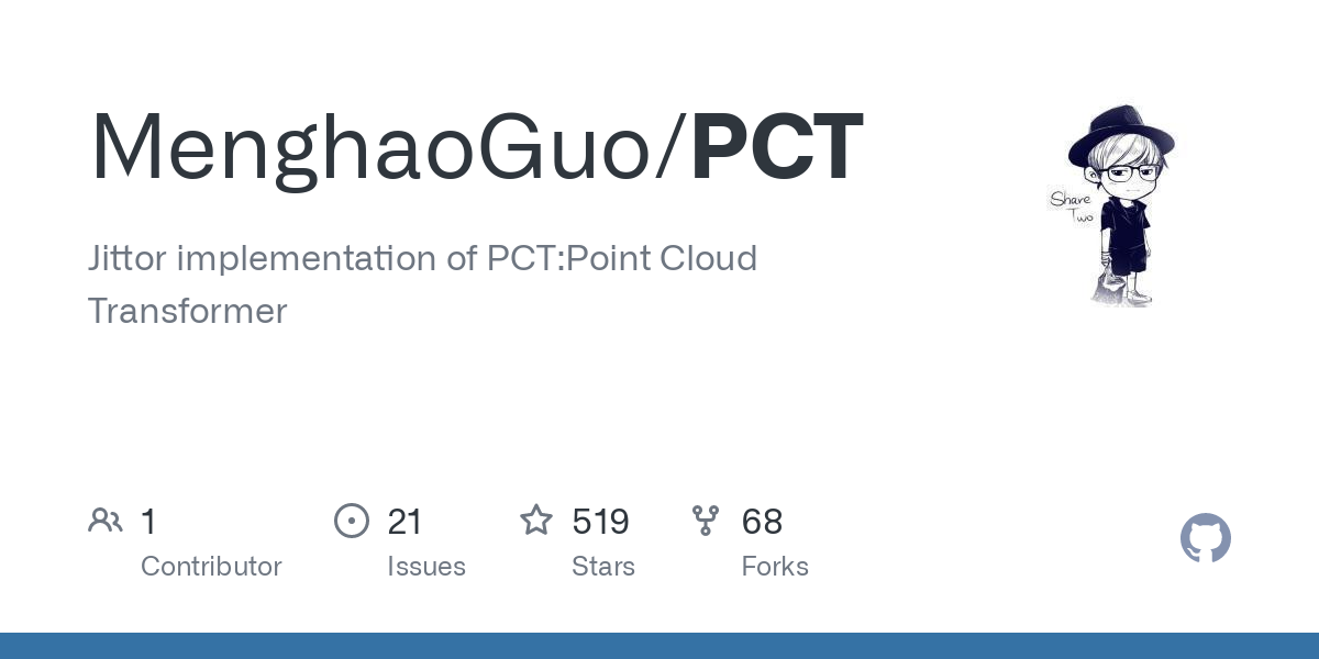 - Meng-Hao Guo, Jun-Xiong Cai, Zheng-Ning Liu, Tai-Jiang Mu, Ralph R. Martin and Shi-Min Hu, PCT: Point Cloud Transformer,