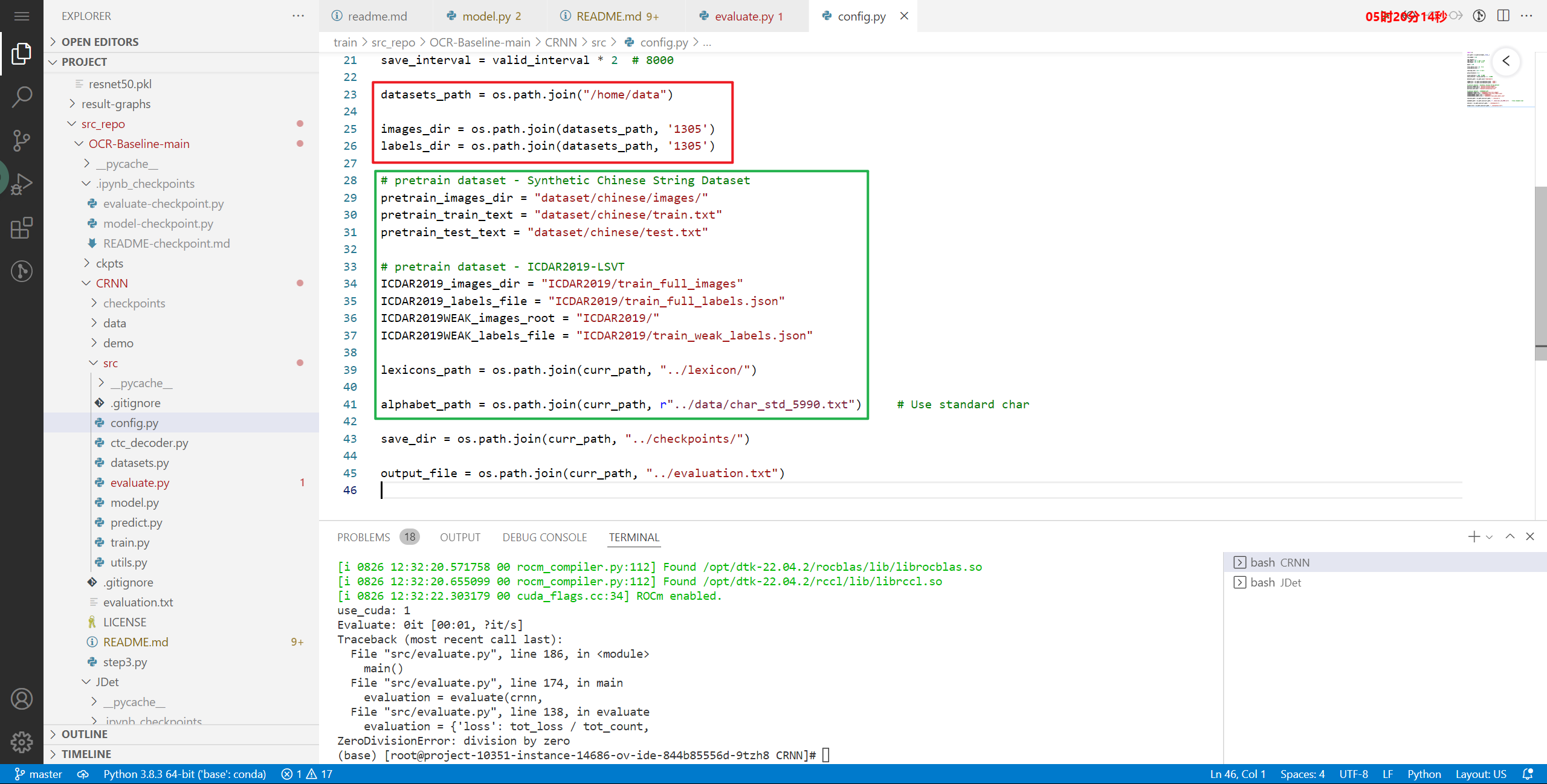 需要对CRNN/src/config.py里的数据集路径进行修改,修改为正确的路径。