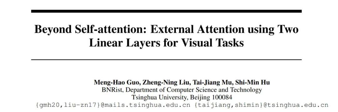 5月5日,清华大学图形学实验室Jittor团队在arXiv上提交论文“Beyond Self-attention: External Attention using Two Linear Layers for Visual Tasks”[2], 提出了一种新的注意机制,称之为“External Attention”,基于两个外部的、小的、可学习的和共享的存储器,只用两个级联的线性层和归一化层就可以取代了现有流行的学习架构中的“Self-attention”,揭示了线性层和注意力机制之间的关系。
