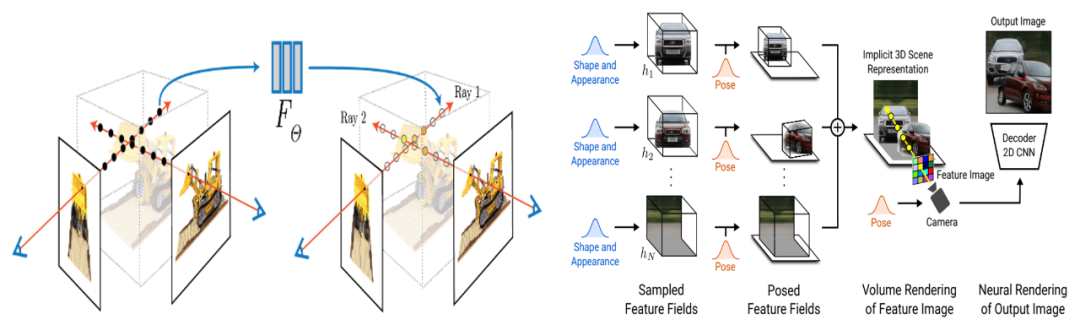 图1基于可微体渲染的* NeRF[1]及GIRAFFE[2]*
