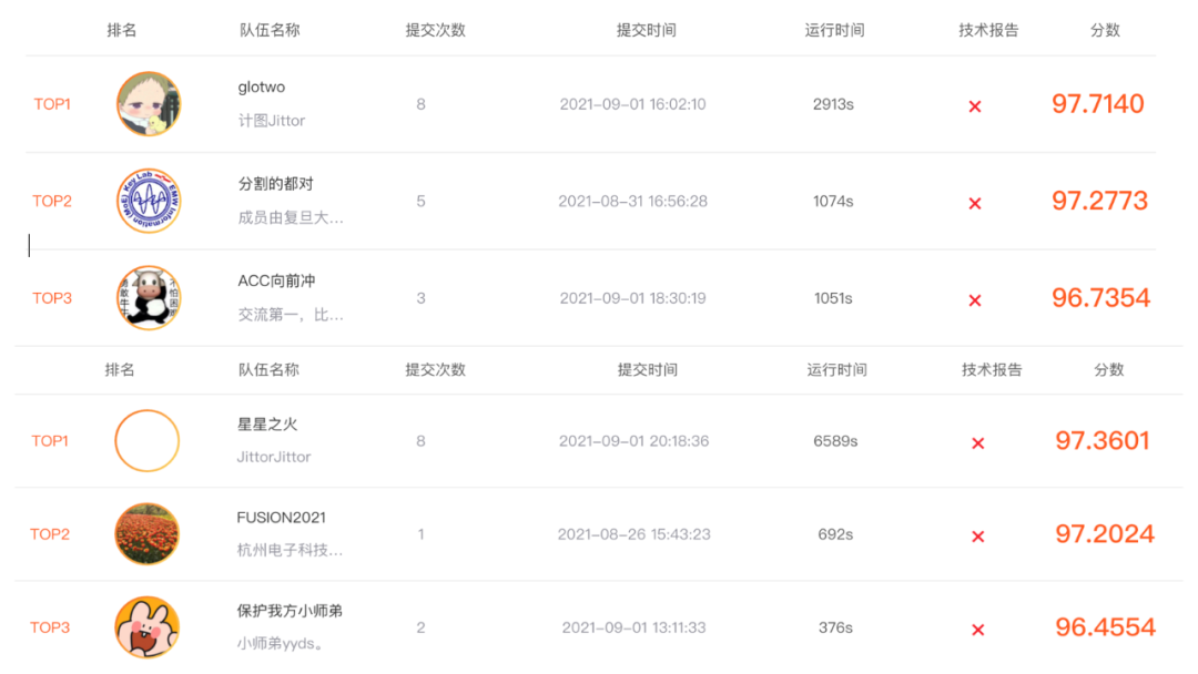 图1 改进的PFNet-Jittor取得两个赛道双第一