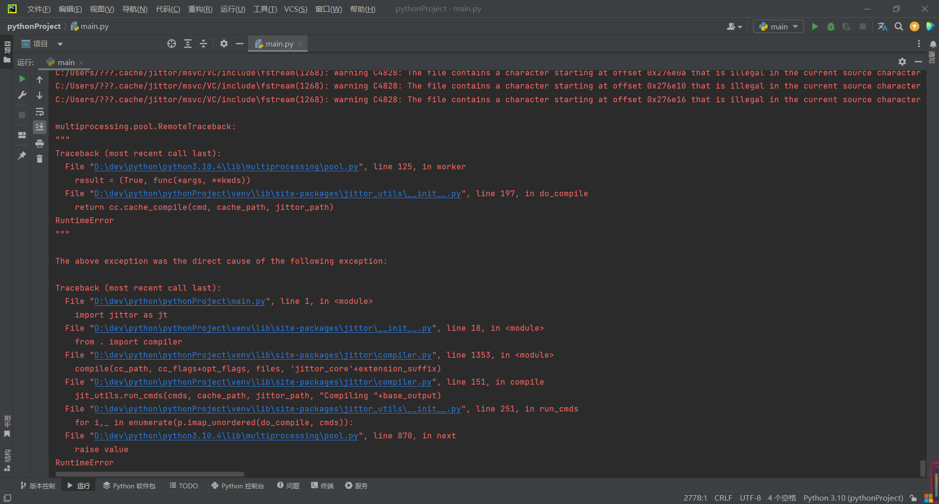 本人是新手小白,刚开始学习jittor,按照Windows安装jittor,可是一次运行就报错了