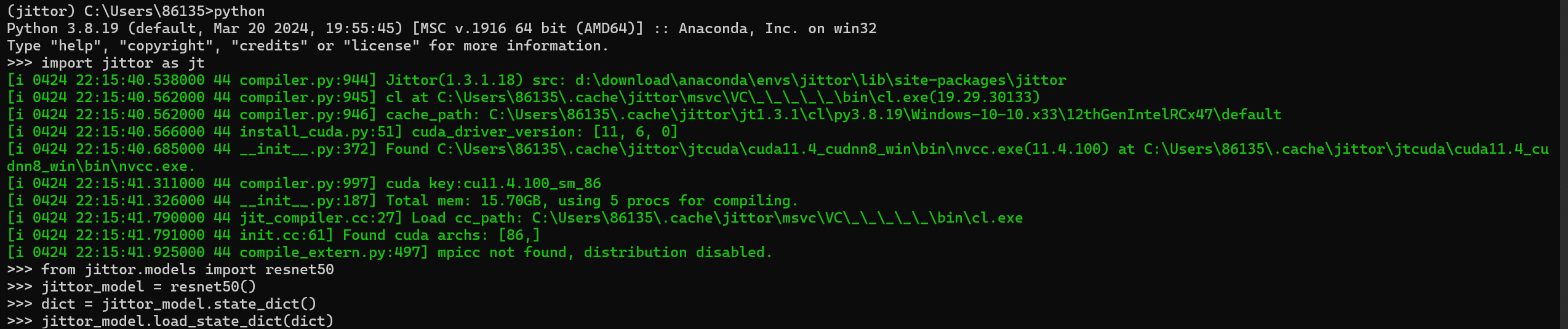 Windows系统,我在终端已成功安装好jittor并测试完毕,import jittor也完全正确,但在pycharm中成功配置好环境后import jittor 仍然报错,请问这是为什么呢?